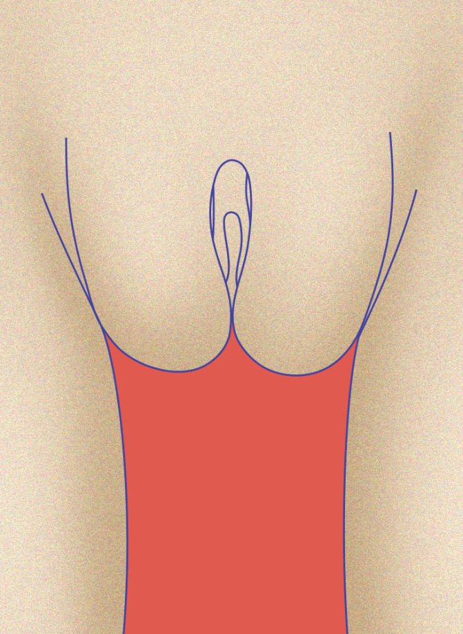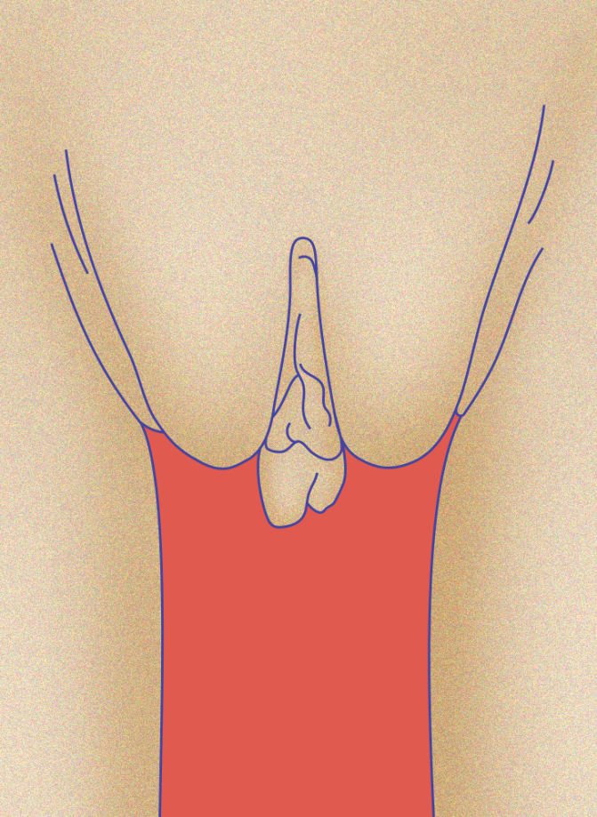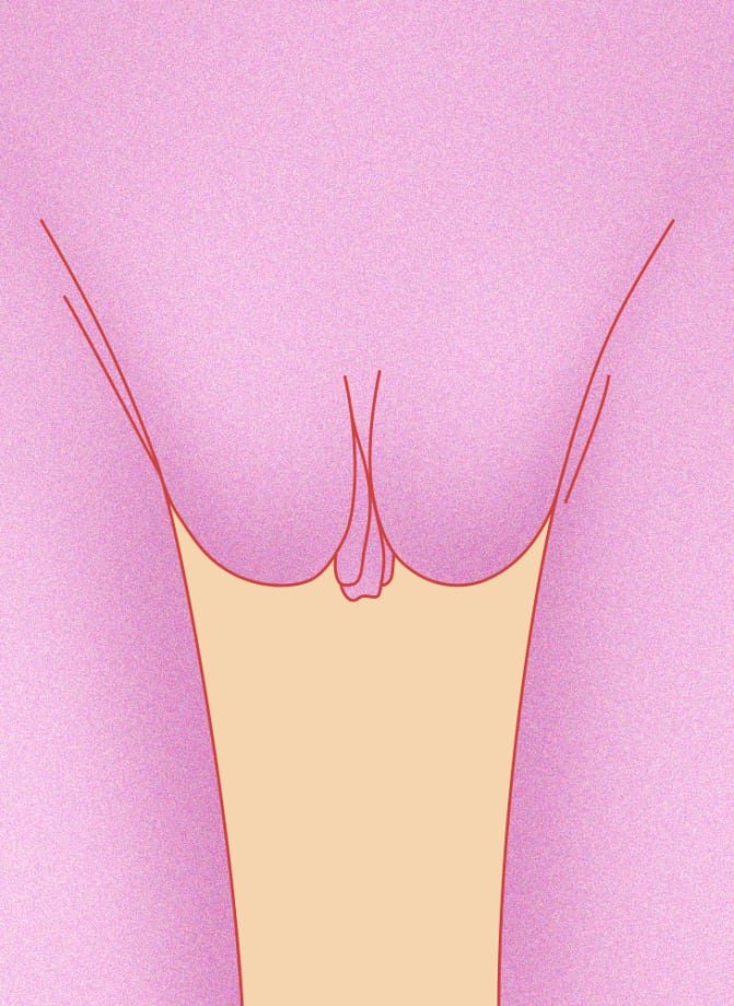 Šiuo atveju didžiosios ir mažosios lytinės lūpos susilieja, todėl atrodo, kad turite lūpų rinkinį. Tai reiškia, kad jūsų išorinės lūpos yra uždarytos, todėl jos paslepia vidines lūpas.