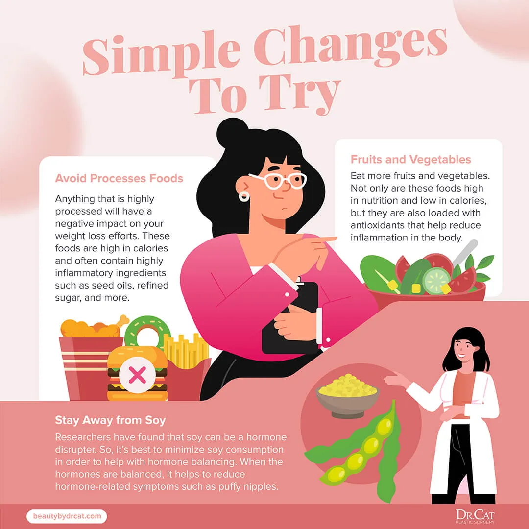 Išsipūtusios spenelių aureolės ir kaip jų atsikratyti (3) MItybos pokyčiai, siekiant sumažinti išsipūtusius spenelius