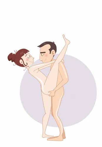 И снова тебе понадобится быть по-олимпийски гибким. Суть в том, что партнеры стоят друг напротив друга, а женщина закидывает одну ногу на плечо мужчине. Для удобства подруги ты можешь сначала чуть присесть. Опасно, если она не занимается гимнастикой и у нее плохая растяжка! А потом женщина держится руками за твою шею, а ты — за ее зад. Короче, поза для героев.
