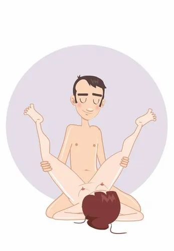 Сначала мужчина ложится на спину, а женщина садится на него. Потом мужчина садится, подтягивает к себе колени, женщина делает то же самое — и они сидят лицом к лицу. Твои ноги окажутся прижатыми к ее телу, ее ноги — сразу за твоими ногами. Можно держаться за ноги друг друга и за свои собственные, чтобы не упасть. Такая вот занятная вещь.