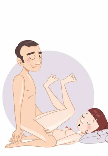 Мужчина лежит на спине, вытянув ноги и разведя их в стороны. Женщина ложится сверху, и совершается проникновение. После этого женщина вытягивает ноги и начинает двигаться вперед-назад с любой скоростью. Это отличная позиция, если тебе нравится наиболее полный телесный контакт — можно целоваться и обниматься. Также хорошо подходит женщинам, которым глубокое проникновение кажется болезненным.