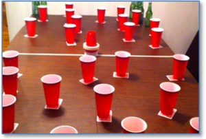 Tai vėlgi tradicinio geriamojo alaus pongas žaidimo išvestinė. Tai nebrangus žaidimas, kurį lengva įrengti ir kurį galima žaisti įvairiais būdais. Pagal vieną versiją po kiekvienu puodeliu yra stalas, ant kurio padėtos atverstos žaidimo kortos. Puodeliuose yra apie ¾ puodelio vandens (arba alaus, jei norite įtraukti gėrimą), o kamuoliukai šokinėja, o tikslas - pataikyti į puodelį. Jei vyras praleidžia taurę, jis turi nusimesti drabužį. Jei jam tai pavyksta, kortelė apverčiama ir, jei joje yra skaičius nuo 2 iki 10, jis gauna vieną imunitetą. Kai taurėje nusileidžia kamuoliukas, taurė pašalinama nuo stalo (arba, jei ji pripildyta alaus ar vyno, laimėtojas gali nurodyti kam nors ją išgerti). Jei tai yra atversta korta, jam suteikiami du imunitetai, o jei tai tūzas - trys. Jei moteris praleidžia taurę, ji perduoda kamuoliuką kitam žaidėjui. Jei ji pataiko į taurę ir tai yra skaičiaus korta, ji nurodo vienam iš vyrų nusirengti drabužį. Jei puodelyje atsiduria kortelė su skaičiumi, ji gali nurodyti dviem vyrams nusirengti vieną drabužį, o jei tai tūzas, ji gali nurodyti trims vyrams nusirengti du drabužius. Taip pat gali būti naudojami džokeriai arba laukinės kortos, kurioms gali būti priskirti tam tikri apdovanojimai arba netekimai.