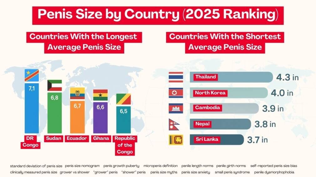 Teksto dydis: +1, +2, normalus.Pasauliniai tyrimai rodo, kad varpos dydis visame pasaulyje skiriasi tik nežymiai priklausomai nuo regiono, tačiau žmonės vis dar labai domisi tarptautiniais palyginimais. Šiuolaikiniai tyrimai, ypač tie, kurie grindžiami klinikiniais matavimais, o ne savarankiškai pateiktais duomenimis, leidžia mums sudaryti realistišką ir tikslų varpos dydžio pagal šalis apžvalgą. Naudodami didelius duomenų rinkinius iš įvairių šalių, tyrėjai sudarė vidutinio varpos dydžio pagal šalis reitingų lentelę 2026 metams, padėdami skaitytojams suprasti, kaip nacionaliniai vidurkiai atitinka pasaulinius varpos dydžio pasiskirstymo modelius. Šie reitingai gali būti įdomūs, tačiau juos reikia vertinti atsargiai, nes duomenų rinkimo metodai labai skiriasi.