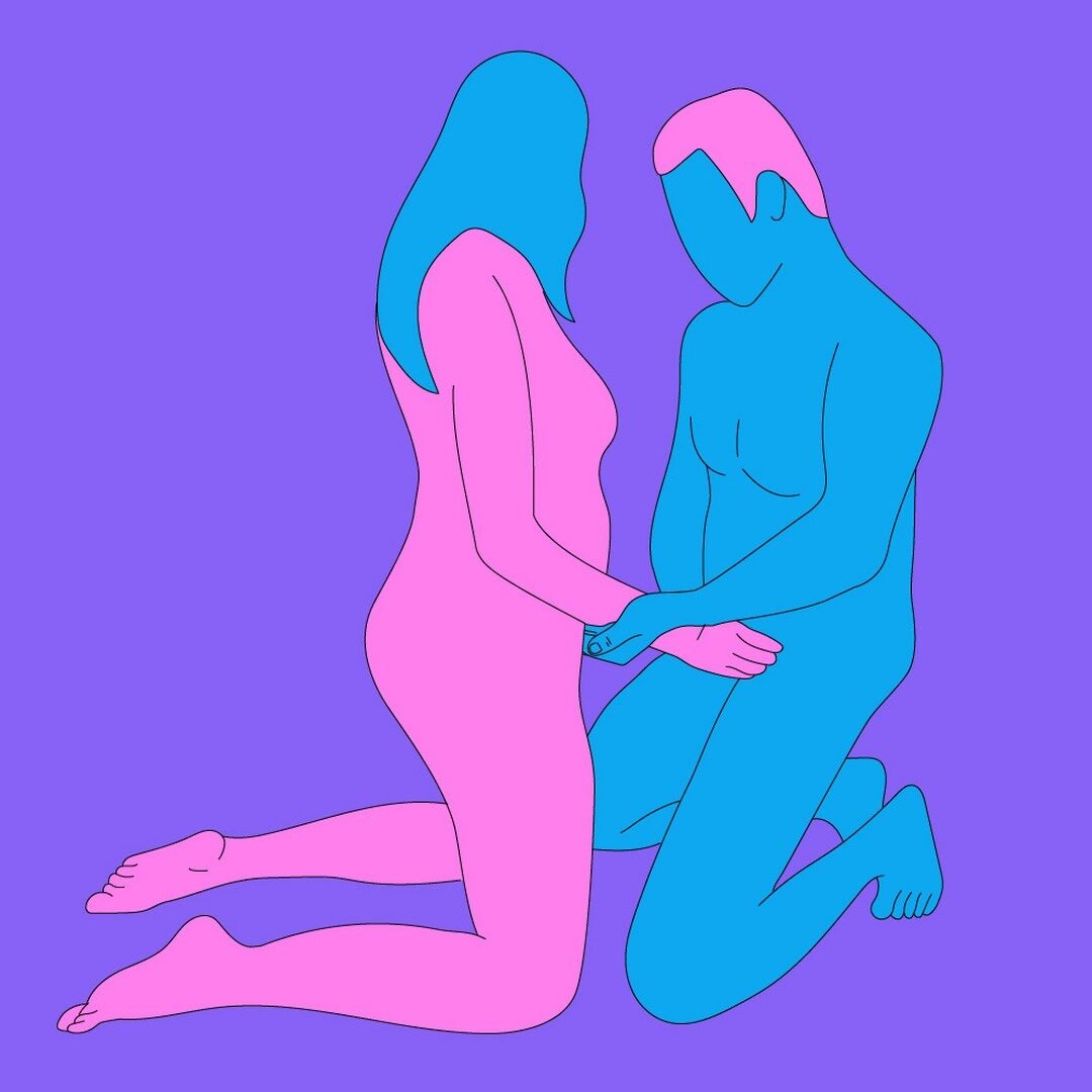 Kaip: Tupėkite arba atsiklaupkite, kaip jums patogiau, ir atsukite veidą į partnerį. Pradėkite glostydami vienas kito šlaunis ir rankas, tada pereikite prie liemens. Būkite švelnūs ir lėtai, žiūrėdami vienas kitam į akis.
